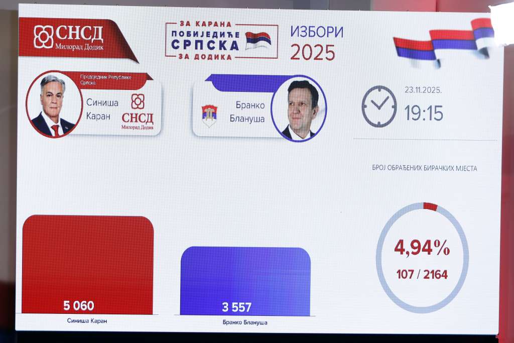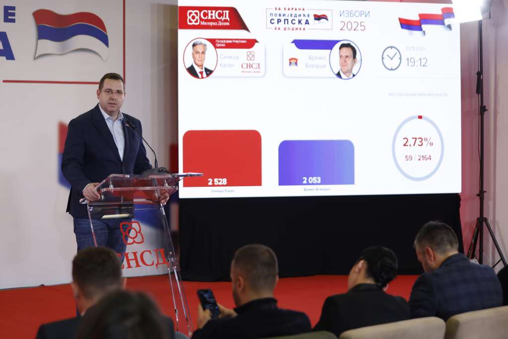 BANJA LUKA, 23. novembar (FENA) - Portparol Saveza nezavisnih socijaldemokrata (SNSD) Radovan Kovačević izjavio je večeras da u ovoj stranci očekuju da će u narednih sat - sat i po proglasiti pobjedu Siniše Karana za predsjednika Republike Srpske.