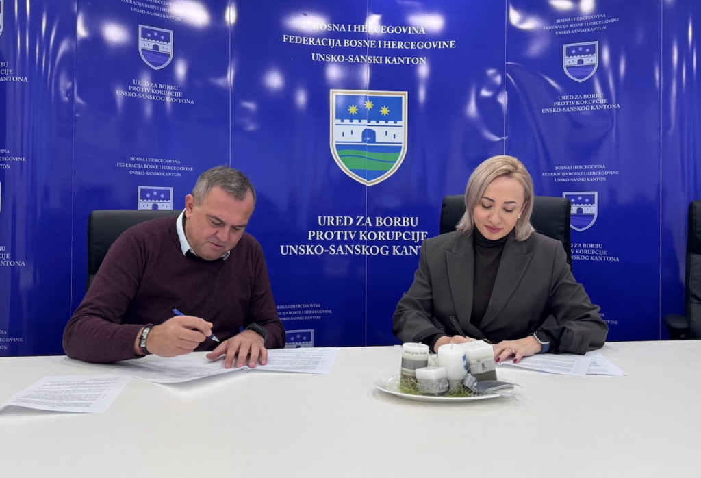 BIHAĆ, 24. novembra (FENA) - Sporazum o saradnji između Ureda za borbu protiv korupcije Unsko-sanskog kantona i Kantonalnog zavoda za pružanje besplatne pravne pomoći potpisan je danas u Bihaću, čime je uspostavljen formalni okvir za pružanje stručne i pravne podrške osobama koje prijave korupciju i pokrenu sudski postupak.