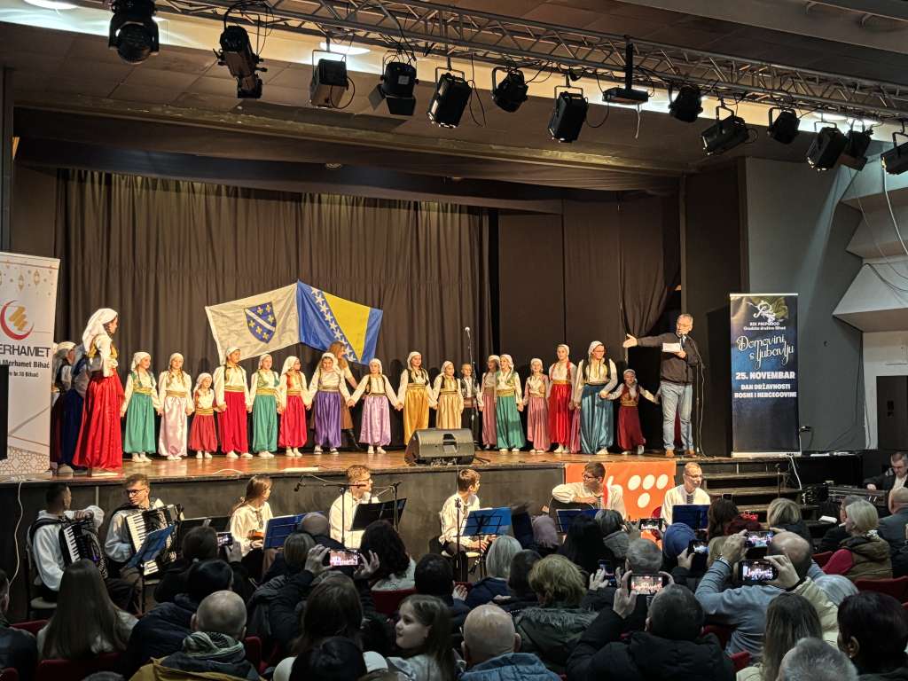 BIHAĆ, 24. novembra (FENA) - Uoči Dana državnosti Bosne i Hercegovine, Bošnjačka zajednica kulture – Gradsko društvo Bihać i MDD Merhamet Bihać već šestu godinu zaredom organizirali su svečanu manifestaciju posvećenu jednom od najznačajnijih datuma savremene bosanskohercegovačke historije. Događaj, koji je prerastao u tradiciju, okupio je građane Bihaća na svečanom koncertu priređenom u čast 25. novembra.