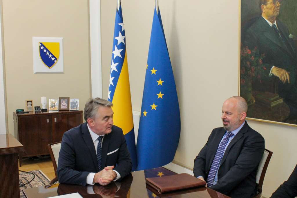 SARAJEVO, 26. novembra (FENA) - Predsjedavajući Predsjedništva Bosne i Hercegovine Željko Komšić razgovarao je s otpravnikom poslova Ambasade Sjedinjenih Američkih Država (SAD) u BiH Johnom Ginkelom o Južnoj gasnoj interkonekciji, kada su se sagovornici složili da ovaj projekt u budućnosti može otvoriti brojne mogućnosti za BiH u oblasti energetske opskrbe.