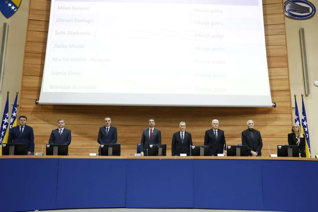 SARAJEVO, 27. novembra (FENA) - Na posebnoj zajedničkoj sjednici oba doma Parlamentarne skupštine Bosne i Hercegovine, poslanici Predstavničkog doma i delegati Doma naroda su ministrima u Vijeću ministara BiH postavljali pitanja iz različitih oblasti, od imenovanja ministra sigurnosti BiH, raspodjele prihoda od indirektnih poreza i etničke zastupljenosti u državnim institucijama, uz pitanja iz energetike, graničnog režima, državne imovine, PDV-a i legalizacije kanabisa u medicinske svrhe. Više pitanja ostalo je bez odgovora zbog odsustva nadležnih predstavnika ministarstava, dok su pojedini ministri iznijeli detaljne proceduralne hronologije i najave daljeg postupanja.