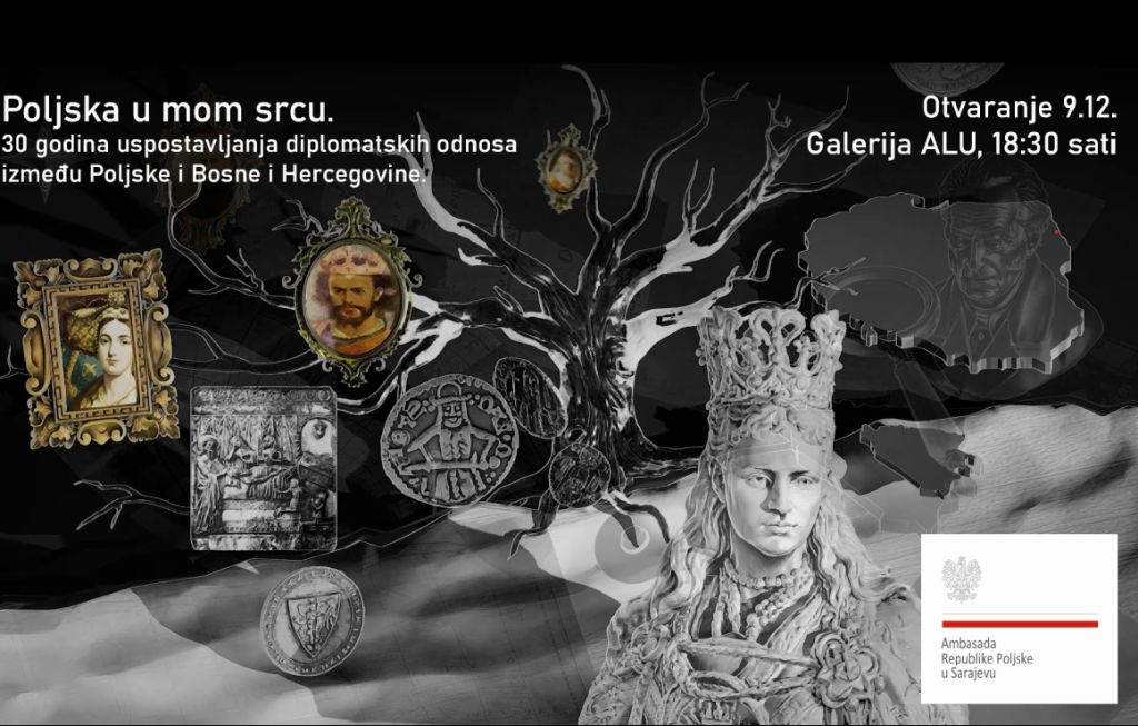 SARAJEVO, 2. decembra (FENA) - Galerija Akademije likovnih umjetnosti u Sarajevu od 9. do 16. decembra bit će domaćin izložbe „Poljska u mom srcu. 30 godina od uspostavljanja diplomatskih odnosa između Poljske i Bosne i Hercegovine“. Događaj organizira Ambasada Republike Poljske u Sarajevu.