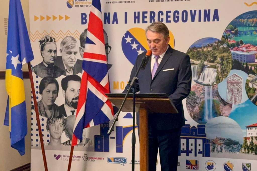 SARAJEVO, 3. decembra (FENA) - Predsjedavajući Predsjedništva Bosne i Hercegovine Željko Komšić održao je danas govor u Domu parlamenta Ujedinjenog Kraljevstva, na prijemu povodom obilježavanja Dana državnosti Bosne i Hercegovine.