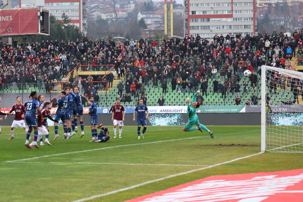 SARAJEVO, 7. decembra (FENA) - Fudbaleri Sarajeva pobijedili su danas na Koševu ekipu Željezničara sa 4:0 u susretu 18. kola WWin lige Bosne i Hercegovine. Sarajevo je slavilo ubjedljivu pobjedu u 157. vječitom derbiju zahvaljujući kojoj je preskočilo gradskog rivala i preuzelo treću poziciju na tabeli.