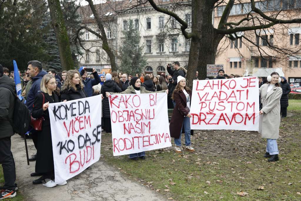 SARAJEVO, 9. decembra (FENA) – Stotine studenata iz sarajevskih domova "Bjelave" i "Nedžarići" okupili su se danas ispred zgrade Vlade Kantona Sarajevo, zahtijevajući hitno rješavanje dugogodišnjeg lošeg stanja u sarajevskim studentskim domovima.