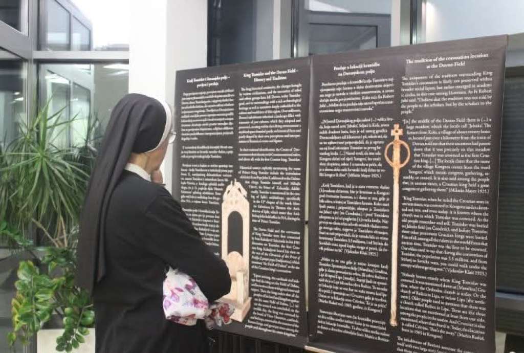 TOMISLAVGRAD, 10. prosinca (FENA) - U povodu Dana grada, u prostoru Hrvatske knjižnice i čitaonice u Pleternici otvorena je izložba pod nazivom "Duvno polje-kraljevsko prijestolje- suvremena interpretacija predaje o krunidbi kralja Tomislava" iz Tomislavgrada, u duhu prijateljstva između ovoga grada i Pleternice.