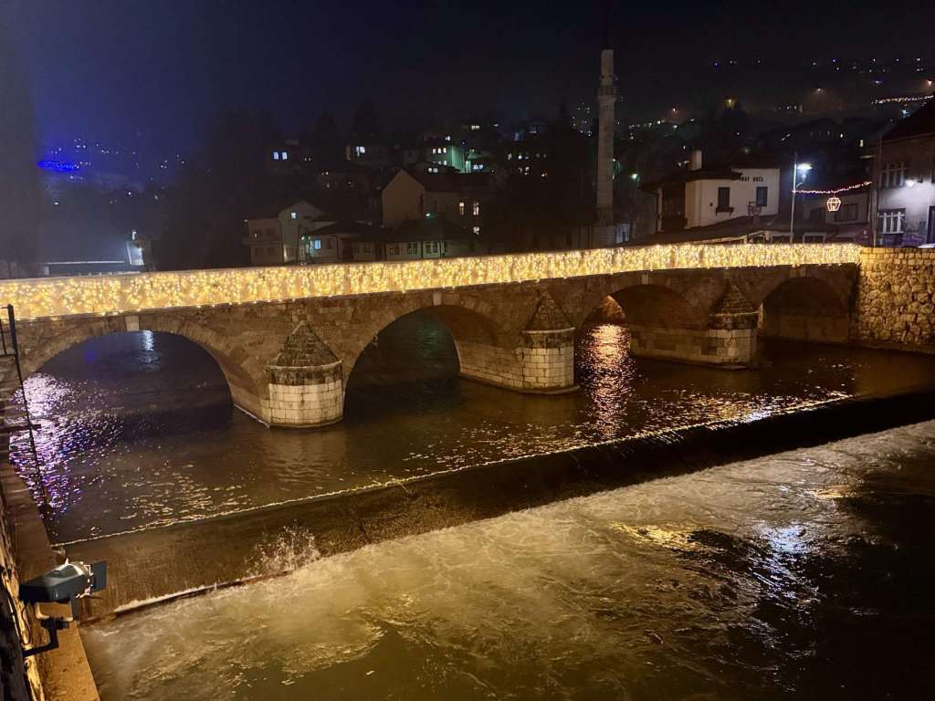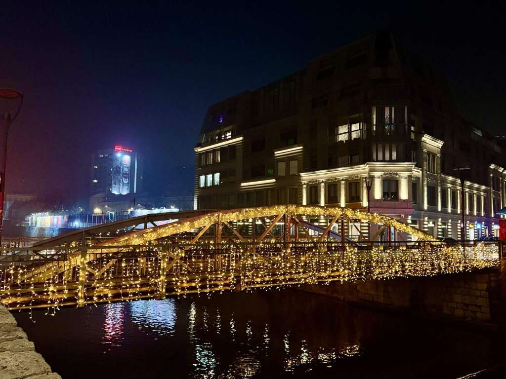 SARAJEVO, 16. decembra (FENA) - Sarajevski mostovi: Šeher-ćehajina ćuprija, Novi most kod Vijećnice, Latinska ćuprija, Drvenija, Ćumurija, Čobanija, Festina lente i Eiffelov most, zablistali si u raskošnom prazničnom ruhu.