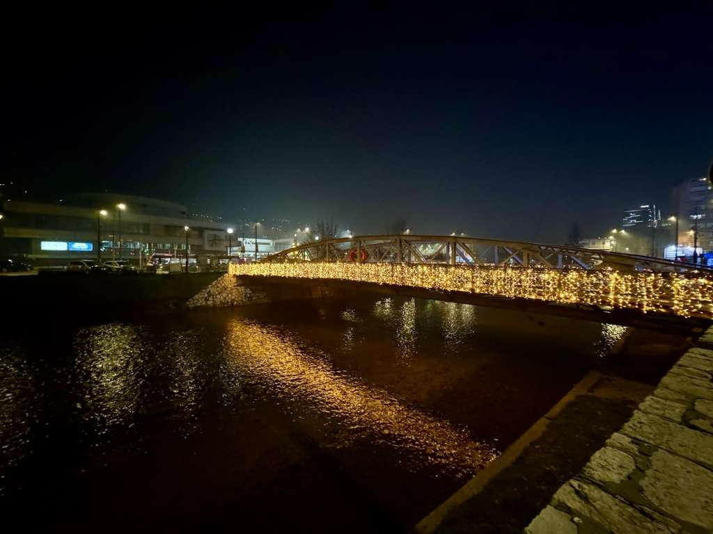 SARAJEVO, 16. decembra (FENA) - Sarajevski mostovi Šeher-ćehajina ćuprija, Novi most kod Vijećnice, Latinska ćuprija, Drvenija, Ćumurija, Čobanija, Festina lente i Eiffelov most, zablistali su u raskošnom prazničnom ruhu.