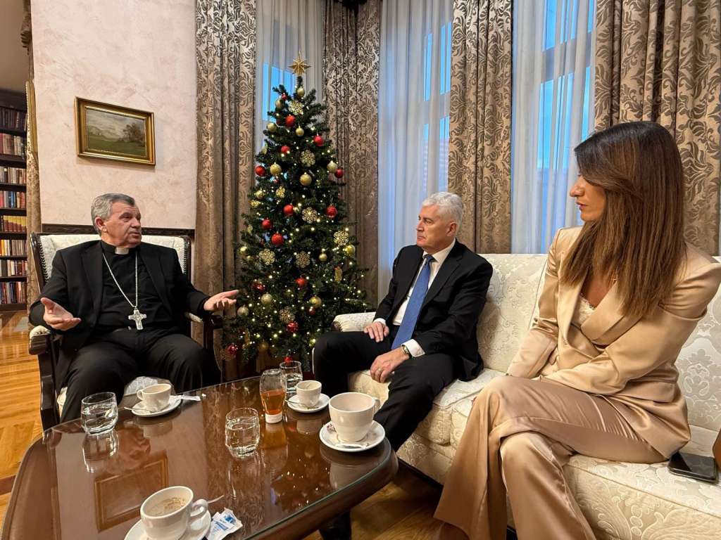 SARAJEVO, 18. prosinca (FENA) - Predsjednik HNS-a BiH Dragan Čović i zastupnica u Zastupničkom domu Parlamentarne skupštine BiH Darijana Filipović u četvrtak su u Sarajevu posjetili vrhbosanskog nadbiskupa metropolita mons. Tomu Vukšića u nadbiskupskoj rezidenciji, gdje su mu uoči blagdana Kristova rođenja uputili božićne čestitke.