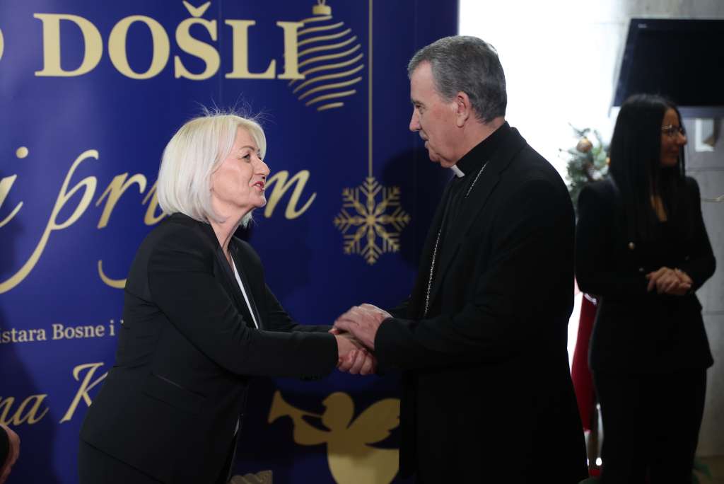 SARAJEVO, 18. decembra (FENA) - Predsjedavajuća Vijeća ministara Bosne i Hercegovina Borjana Krišto organizovala je večeras tradicionalni božićni prijem u zgradi institucija Bosne i Hercegovine.