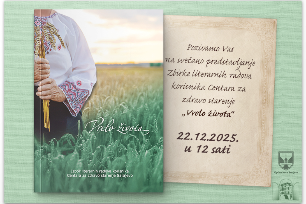 SARAJEVO, 22. decembra (FENA) - Predstavljanje zbirke literarnih radova korisnika Centara za zdravo starenje pod nazivom „Vrelo života“ bit će upriličeno danas u 12.00 sati u Nacionalnoj i univerzitetskoj biblioteci Bosne i Hercegovine (NUBBiH).