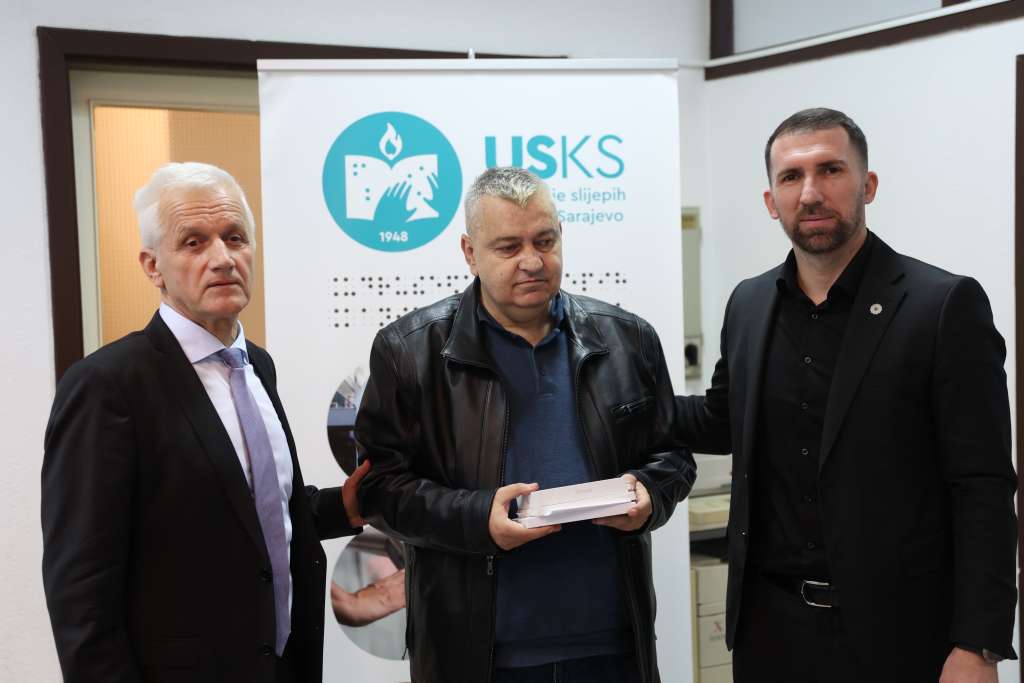 SARAJEVO, 22. decembra (FENA) - Federalni ministar rada i socijalne politike Adnan Delić uručio je danas suvremene mobitele za šest slijepih osoba, članova Udruženja slijepih Kantona Sarajevo. Mobiteli su značajna podrška slijepoj osobi u obavljanju svakodnevnih aktivnosti naročito onima koji se školuju, rade i društveno su aktivni.