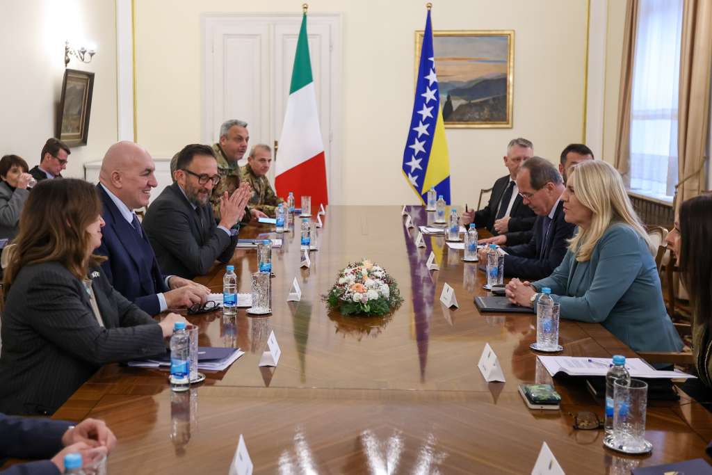 SARAJEVO, 24. decembra (FENA) - Član Predsjedništva Bosne i Hercegovine Željka Cvijanović sastala se s ministrom odbrane Republike Italije Guidom Crosettom sa kojim je, između ostalog, razgovarala i o evropskom putu BiH.
