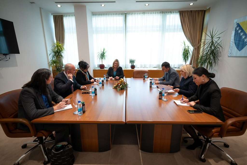 SARAJEVO, 29. decembra (FENA) - Predsjedateljica Vijeća ministara Bosne i Hercegovine Borjana Krišto održala je sastanak s otpravnikom poslova Veleposlanstva Sjedinjenih Američkih Država u Bosni i Hercegovini Johnom Ginkelom.