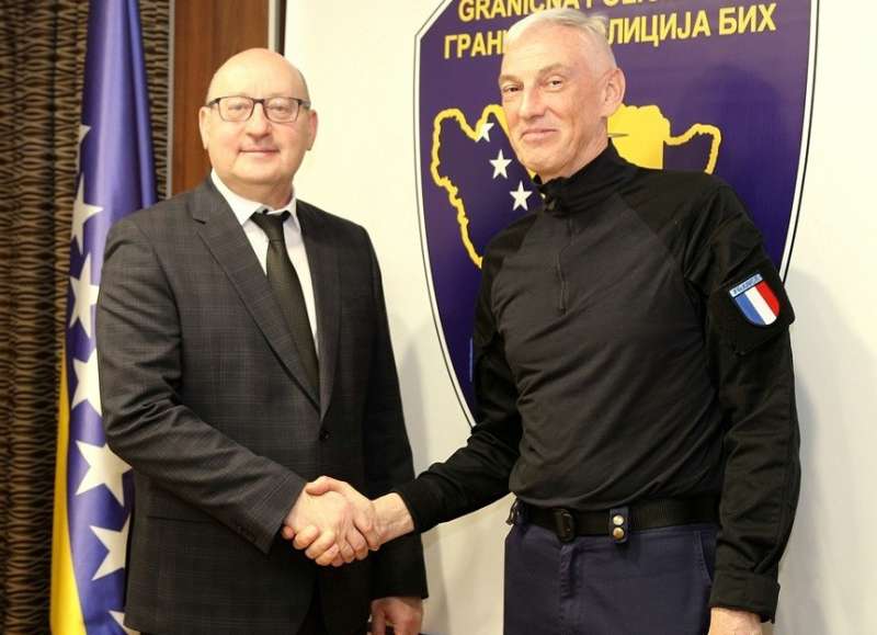 SARAJEVO, 13. siječnja (FENA) - Direktor Granične policije Bosne i Hercegovine (GP BiH) Mirko Kuprešaković primio je u utorak u oproštajni posjet specijalnog savjetnika za policijske agencije EUFOR-a i kapetana francuske žandarmerije Fabricea Grutera, u sjedištu Granične policije BiH u Sarajevu.