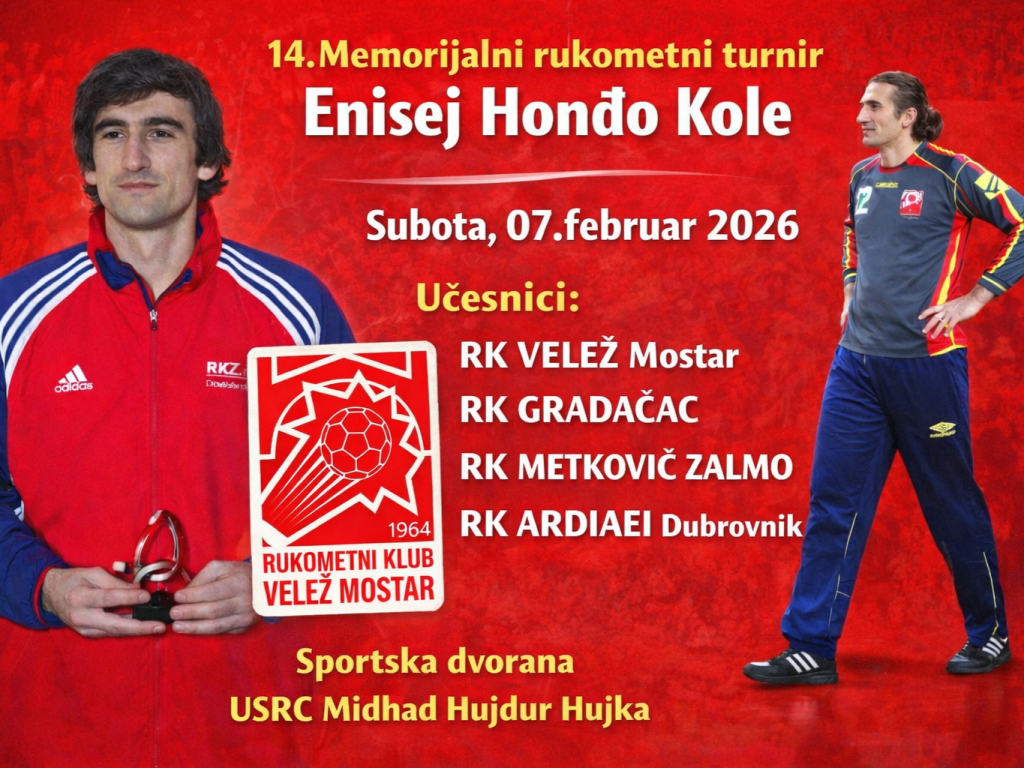 MOSTAR, 14. siječnja (FENA) – Rukometni klub Velež 7. veljače ugostit će 14. izdanje memorijalnog međunarodnog turnira "Enisej Honđo Kole".