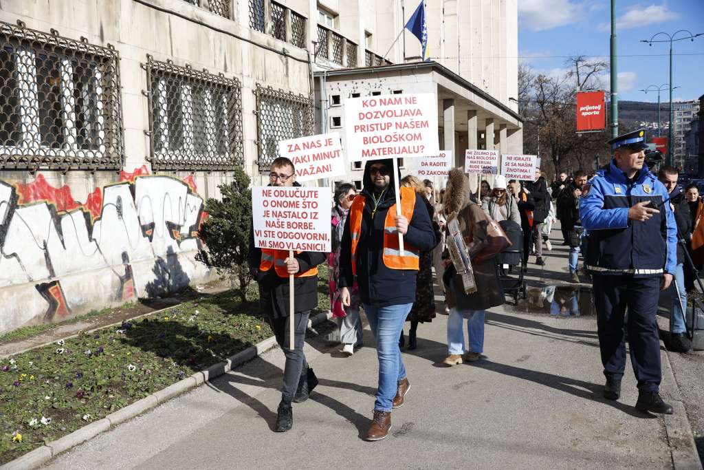 SARAJEVO, 27. januara (FENA) - Grupa pacijenata oštećenih zatvaranjem Poliklinike Northwestern Medical Center u Sarajevu okupila se danas ispred Federalnog ministarstva zdravstva u glavnom gradu BiH kako bi tražili od odgovornih hitan stručni nadzor nad svojim zamrznutim genetskim materijalom koji je 3,5 mjeseca bez zvaničnog nadzora.