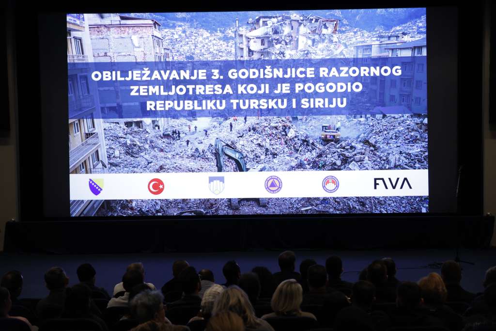 SARAJEVO, 6. februara (FENA) - U Općini Novi Grad Sarajevo upriličena je komemoracija za treću godišnjicu razornog zemljotresa koji je pogodio Tursku i Siriju. Prikazan je i film 'Nisi sam' s potresnim ispovijestima pripadnika Službe civilne zaštite i Gorske službe spašavanja Općine Novi Grad Sarajevo tokom misije spašavanja žrtava tog zemljotresa.