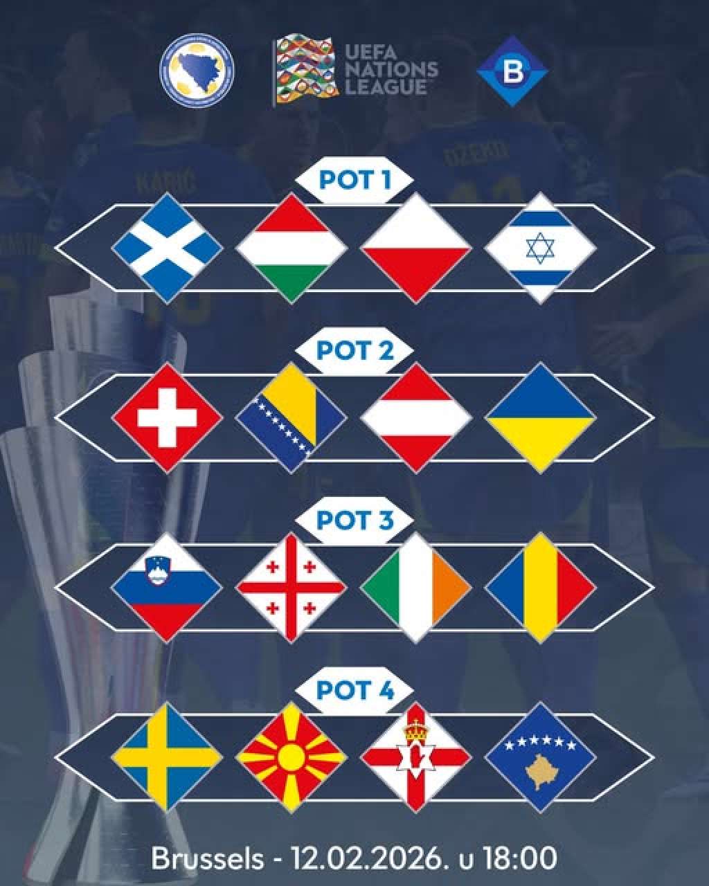 SARAJEVO, 9. februara (FENA) - Žrijebanje grupa novog izdanja UEFA Lige nacija za sezonu 2026./2027. bit će održano u četvrtak, 12. februara u 18 sati u Briselu.