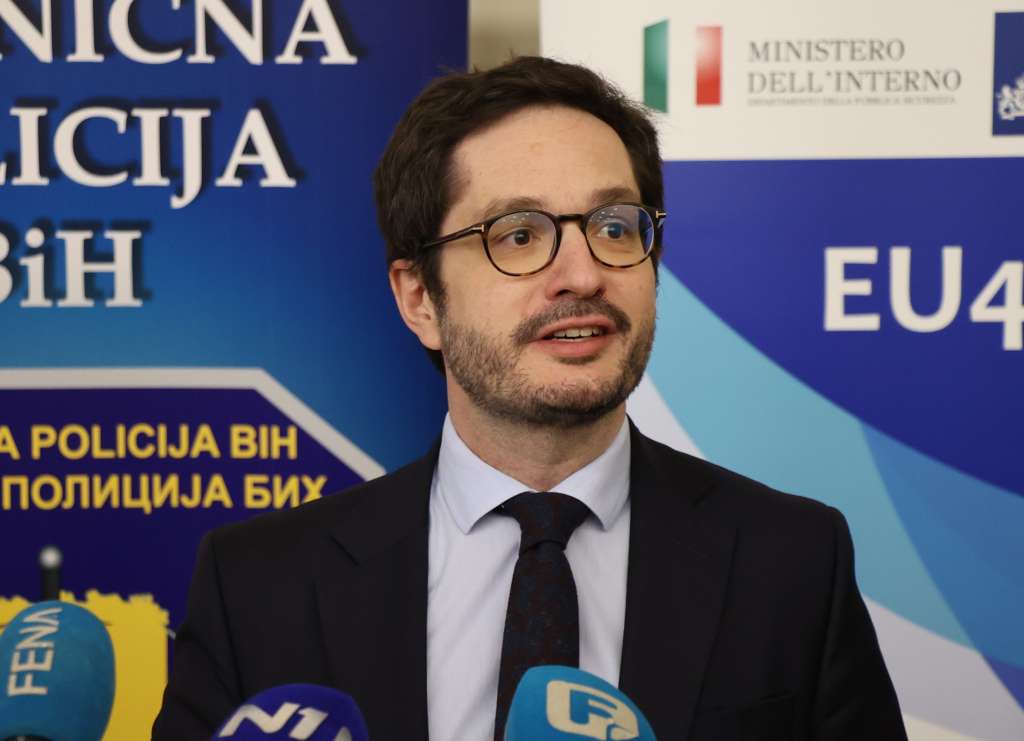 MOSTAR, 12. veljače (FENA) - Ceremonija primopredaje specijalizirane opreme za obuku pilota dronova Graničnoj policiji Bosne i Hercegovine (GPBiH) održana je u četvrtak u prostorijama Agencije za školovanje i stručno usavršavanje kadrova (AEPTM) u Mostaru, gdje policijski službenici trenutno prolaze temeljnu obuku za operatere dronova u okviru ove agencije.