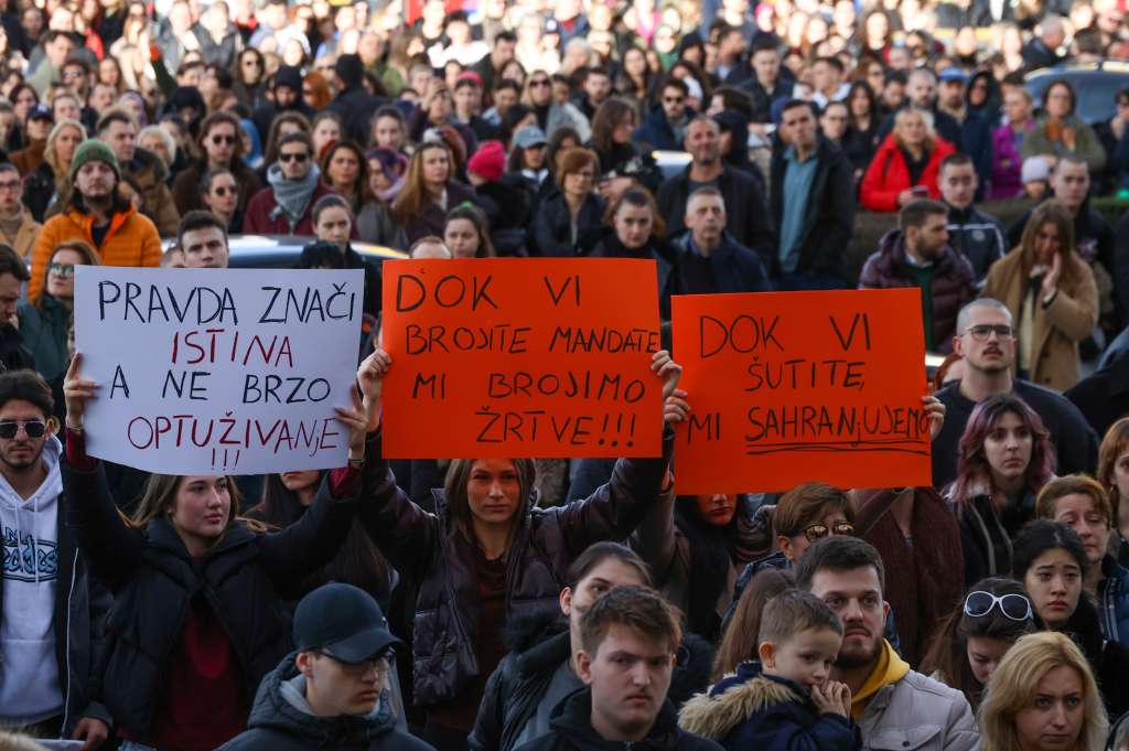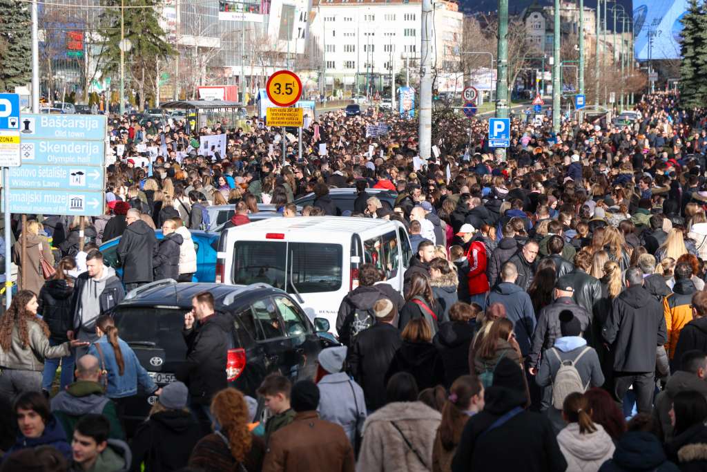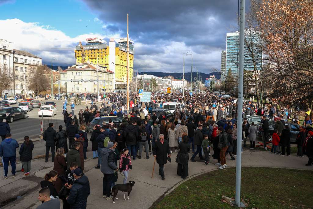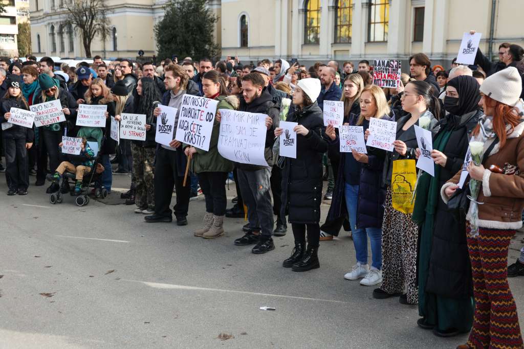 SARAJEVO, 14. februara (FENA) - U Sarajevu je u blizini Zemaljskog muzeja održan protest građana zbog tramvajske nesreće koja se dogodila 12. februara na jednoj od prometnijih saobraćajnih raskrsnica kada je tramvaj iskočio iz šina usljed čega je na licu mjesta poginuo student Erdoan Morankić iz Brčkog, koji je bio na stanici.