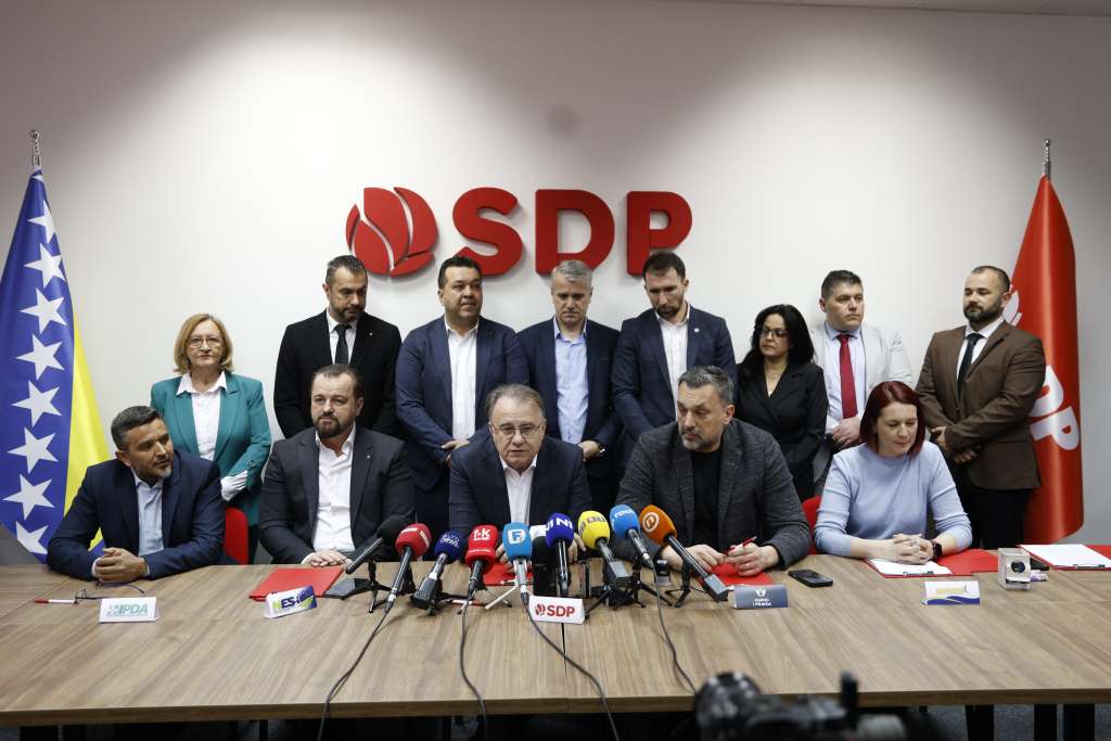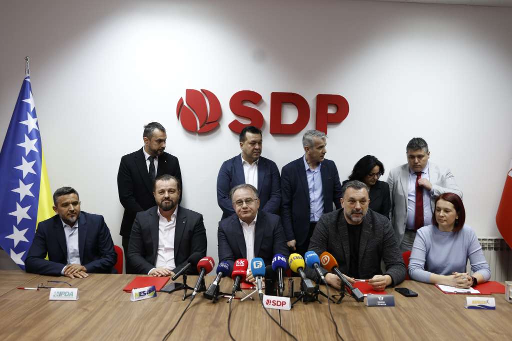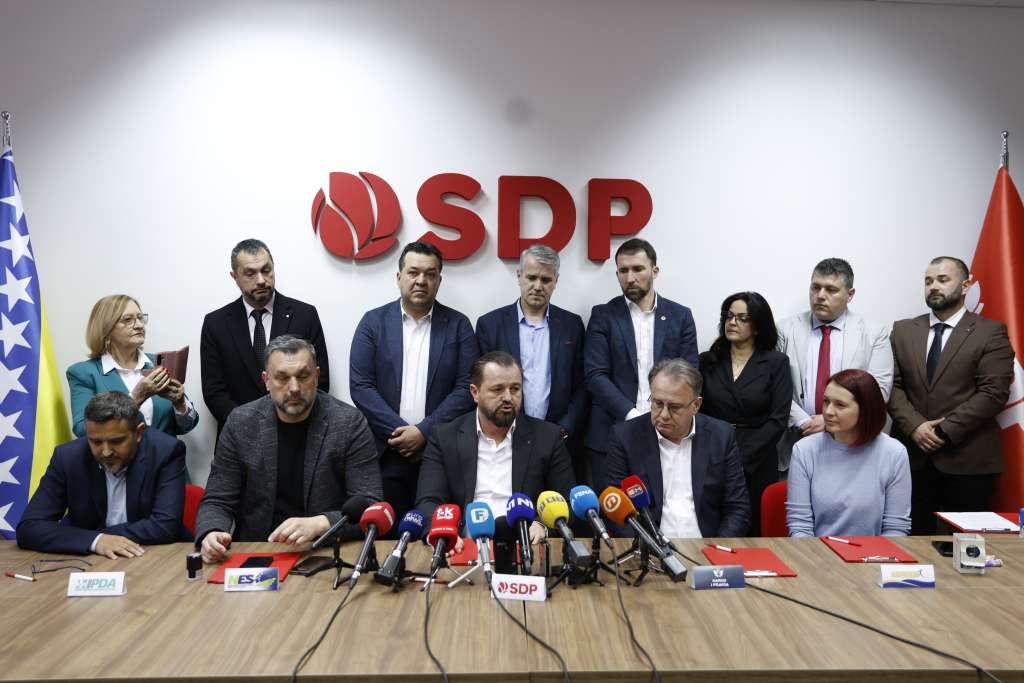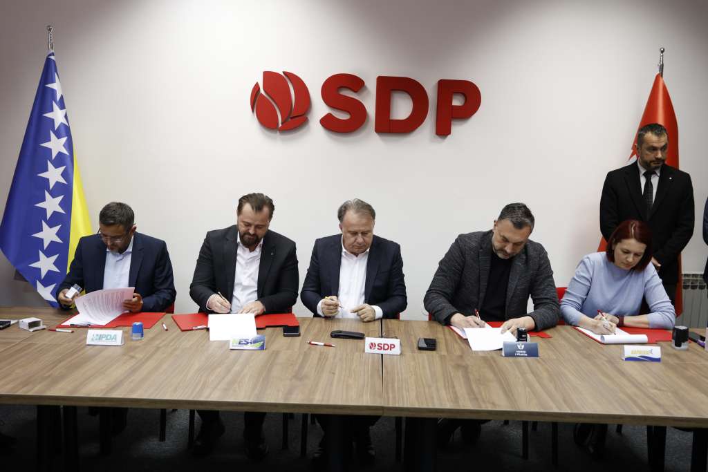 BANJA LUKA, 19. februara (FENA) - Predstavnici pet političkih partija – Socijaldemokratske partije Bosne i Hercegovine (SDP BiH), Naroda i Pravde, NES-a, stranke Naprijed i Pokreta demokratske akcije - potpisali su danas u Banjoj Luci Sporazum o zajedničkom nastupu na opštim izborima 2026. godine.