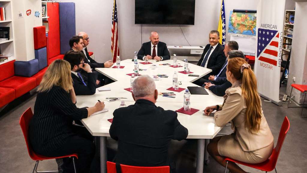 SARAJEVO, 25. februara (FENA) - U nastavku aktivnog dijaloga s privatnim sektorom, otpravnik poslova Ambasade Sjedinjenih Država John Ginkel sastao se s generalnim direktorima kompanija Violeta, FEAL, TT Kabeli i Aluminij Industries danas u Mostaru.