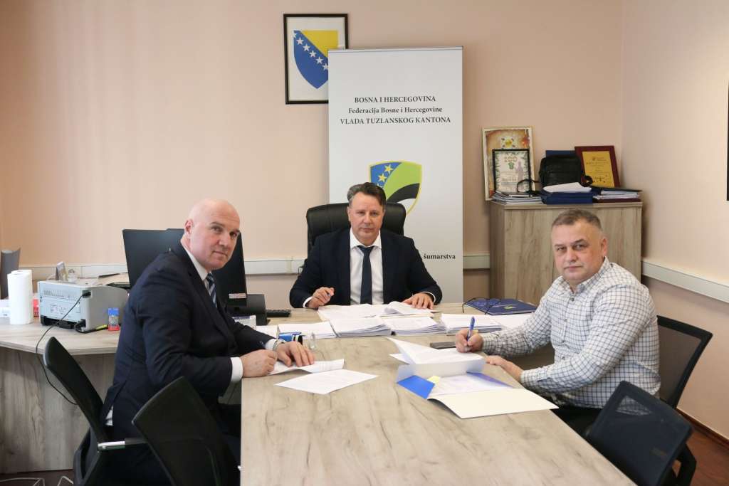 TUZLA, 26. februara (FENA) - Ministar poljoprivrede, šumarstva i vodoprivrede Tuzlanskog kantona Fedahija Ahmetović potpisao je danas četiri ugovora o prenosu sredstava sa općinama Kladanj i Sapna po Programu ulaganja sredstava vodnih naknada u oblast vodoprivrede u ovoj godini.