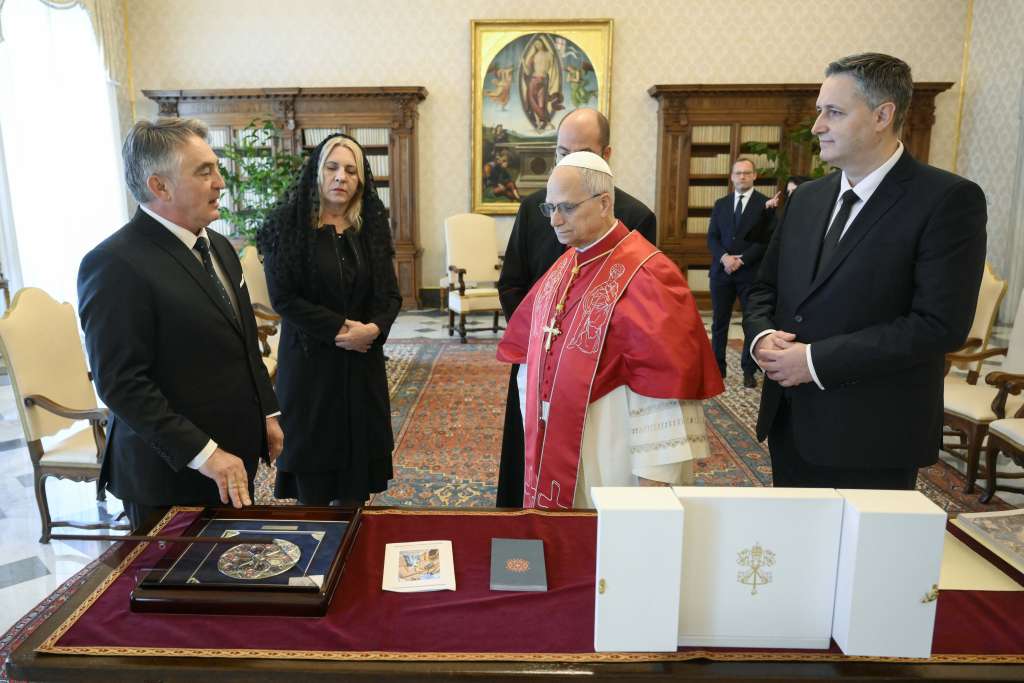 RIM, 9. marta (FENA) - Članovi Predsjedništva Bosne i Hercegovine danas su se sastali sa Svetim ocem papom Lavom XIV u Vatikanu. Tokom sastanka potvrđeni su izuzetno prijateljski odnosi Bosne i Hercegovine i Svete stolice.
