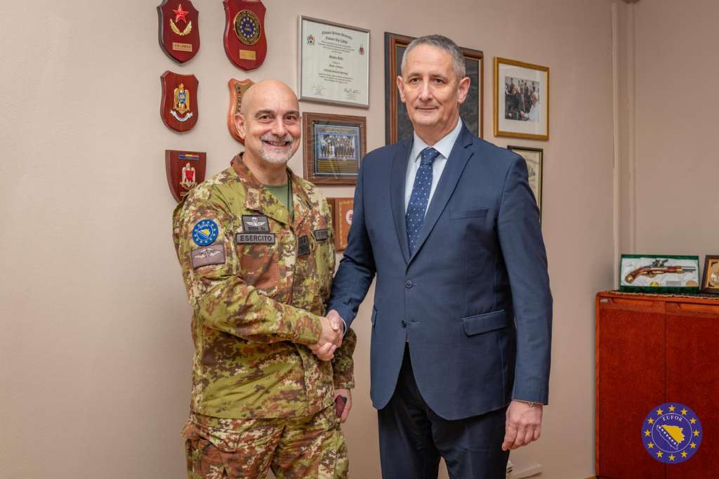SARAJEVO 10. marta (FENA) - Komandant EUFOR-a generalmajor Maurizio Fronda sastao se danas sa zamjenikom ministra odbrane Bosne i Hercegovine za politiku i planove Slavenom Galićem i zamjenikom ministra odbrane za upravljenje resursima Aleksandrom Goganovićem.