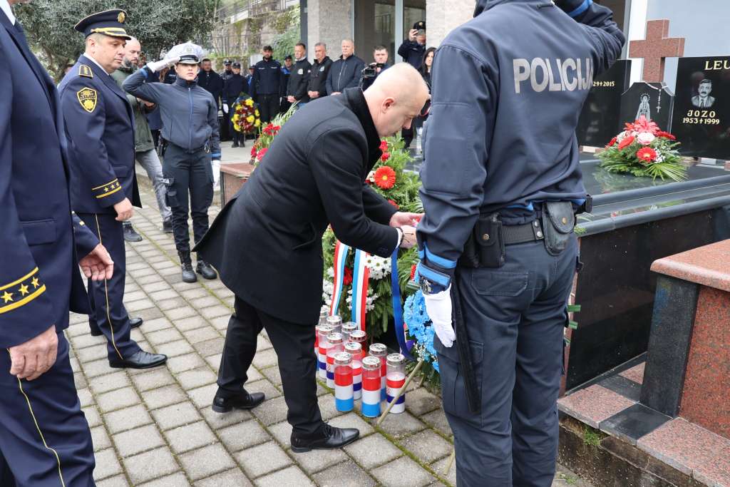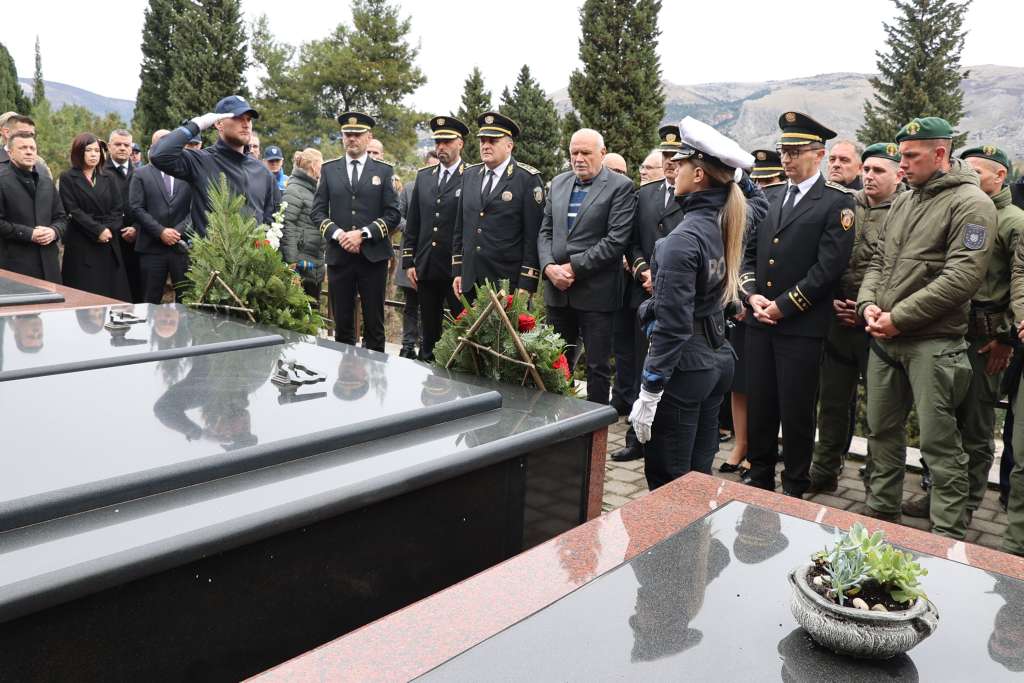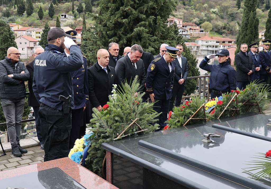 MOSTAR, 27. ožujka (FENA) - Polaganjem cvijeća i paljenjem svijeća na groblju Masline u Mostaru u petak je obilježena obljetnica smrti federalnog doministra unutarnjih poslova Joze Leutara, uz nazočnost predstavnika policijskih struktura i vlasti Hercegovačko-neretvanske županije (HNŽ).
