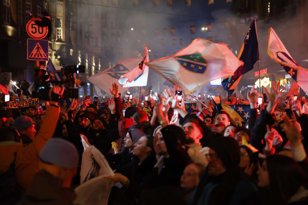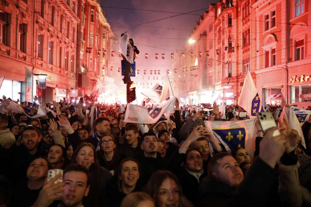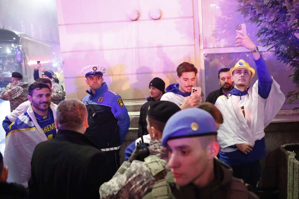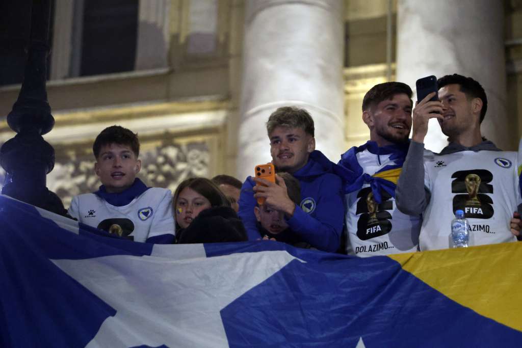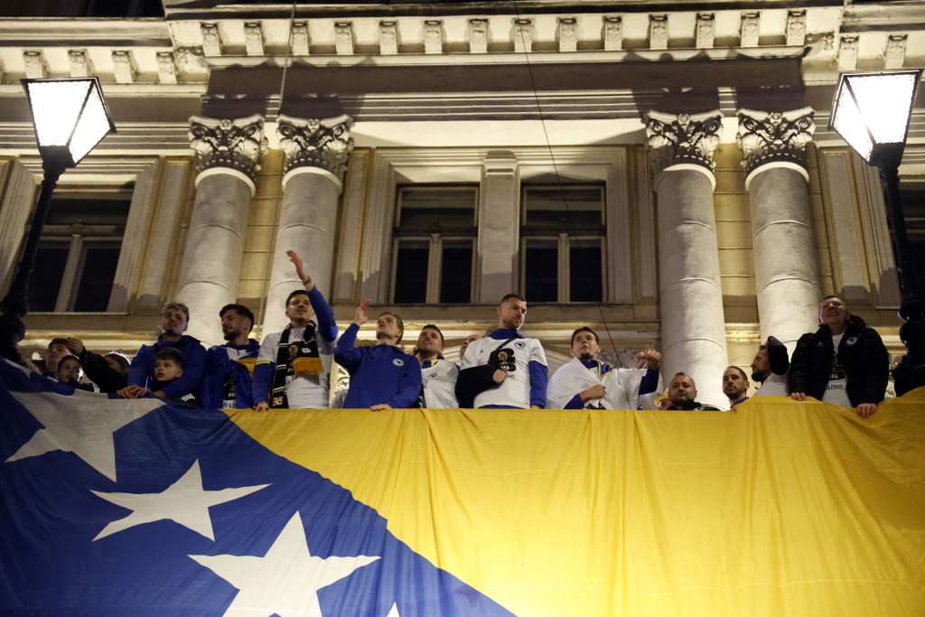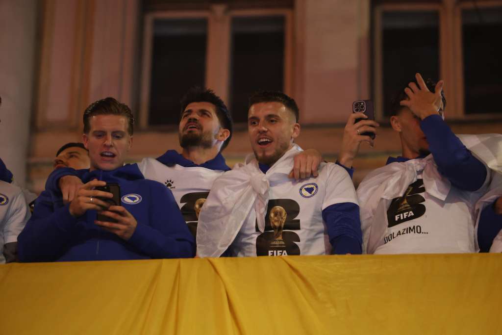 SARAJEVO, 1. aprila (FENA) - Desetine hiljada ljudi okupilo se večeras u Sarajevu u Titovoj ulici, ispred Vječne vatre, gdje su dočekali nogometaše BiH sa kojim su proslavili plasman na Svjetsko prvenstvo.