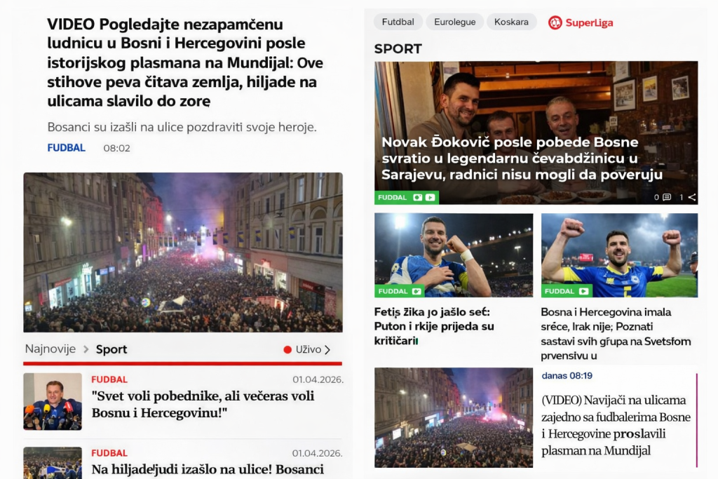 BEOGRAD, 1. travnja (FENA) - Pobjeda nogometne reprezentacije Bosne i Hercegovine sinoć uvelike je odjeknula u regiji. Srbijanski mediji navode kako je BiH sinoć izvela "nogometno čudo" i izbacila favorizirane Talijane.