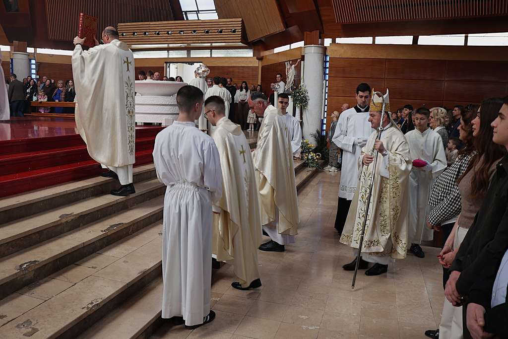 MOSTAR, 5. travnja (FENA) - Središnje misno slavlje na Uskrs u prepunoj Katedrali Marije Majke Crkve u Mostaru predvodio je mostarsko-duvanjski biskup i apostolski upravitelj trebinjsko-mrkanski mons. Petar Palić koji je istaknuo kako Uskrs nosi poruku nade, pobjede života nad smrću i poziva vjernike da budu svjedoci uskrsloga Krista u svakodnevnom životu.