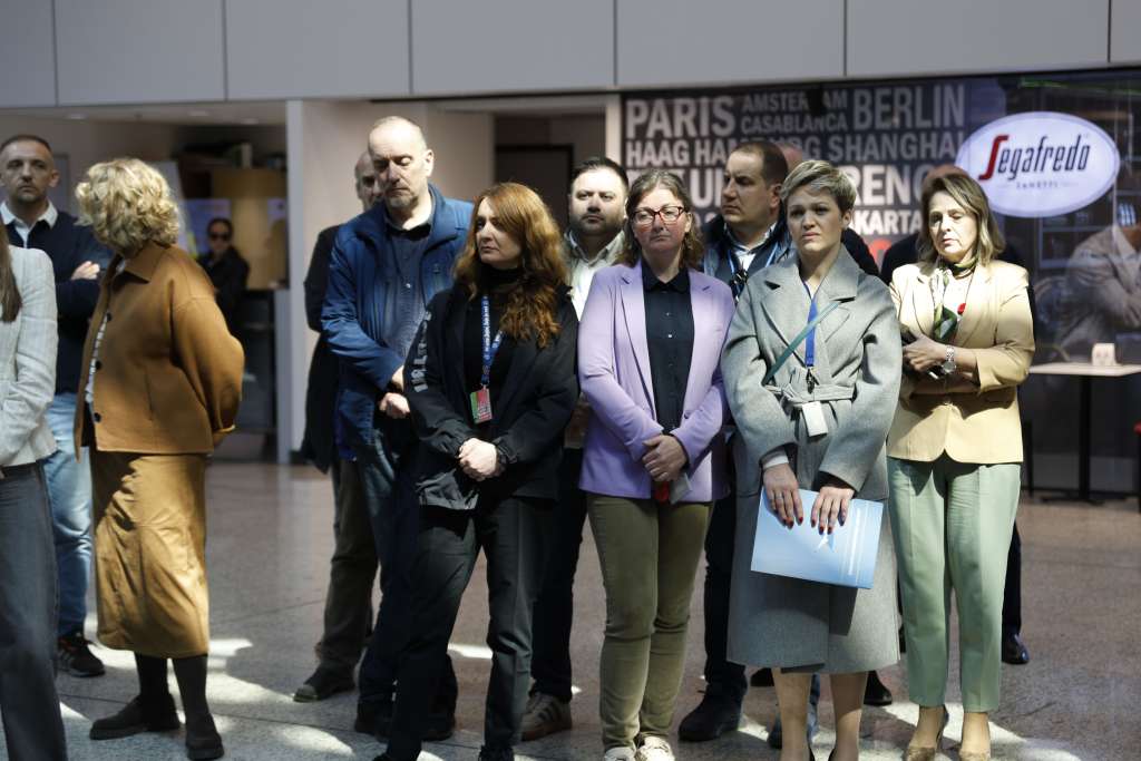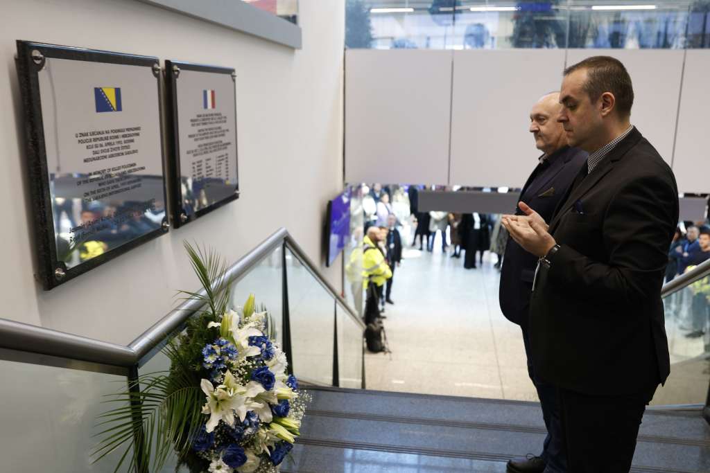 SARAJEVO, 6. aprila (FENA) - Na Međunarodnom aerodromu Sarajevo danas je prigodnom ceremonijom odata počast Jasminu Kadiću i Reufu Muhiću, hrabrim pripadnicima Policije Republike Bosne i Hercegovine koji su 1992. godine dali svoje živote braneći aerodrom i domovinu. U znak sjećanja i poštovanja cvijeće su položili članovi uprave društva Dino Selimović i Slobodan Kadijević.