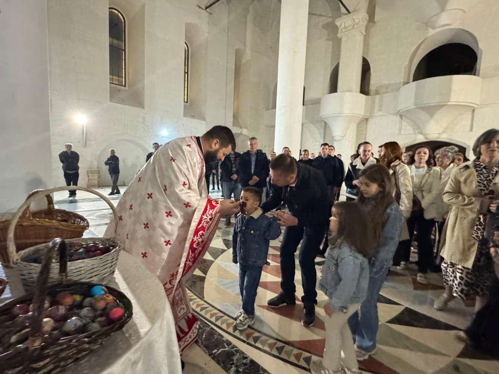 MOSTAR, 12. travnja (FENA) - Vaskršnju liturgiju u Sabornoj crkvi Svete Trojice u Mostaru, koja još nije obnovljena, služio je starješina hrama Duško Kojić, uz susluženje đakona Miloša Janjića i prisustvo velikog broja vjernika. Zvona sa Saborne crkve zazvonila su u ponoć najavljujući najradosniji kršćanski blagdan.