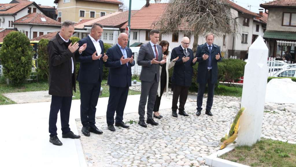 SARAJEVO, 14. aprila (FENA) - Povodom 15. aprila, Dana Armije Republike Bosni i Hercegovine, delegacija Tuzlanskog kantona predvođena premijerom Irfanom Halilagićem danas je položila cvijeće i odala počast na mezaru prvog predsjednika Republike Bosne i Hercegovine Alije Izetbegovića, generala Rasima Delića i poginulih pripadnika Aarmije RBiH u Memorijalnom centru „Kovači“ u Sarajevu.