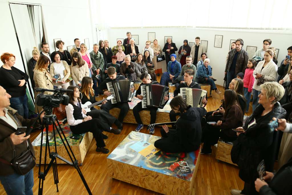 BUGOJNO, 18. aprila (FENA) - U Galeriji KSC otvorena je izložba "Mi(r) kad profesori ne gledaju", koju je realizirao tim mladih u okviru programa "Furaj mir".