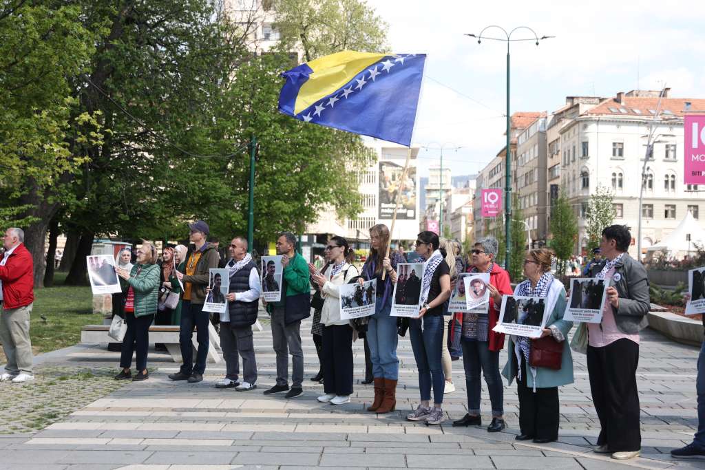 SARAJEVO, 18. aprila (FENA) – Palestinska zajednica u Bosni i Hercegovini organizovala je danas u Sarajevu skup solidarnosti sa palestinskim zatvorenicima na kome je istaknut težak položaj više od 9.600 palestinskih zatvorenika, uključujući žene i djecu, te upućen apel za pravdu i slobodu.