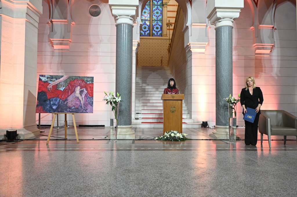SARAJEVO, 20. aprila (FENA) - Izložbom poliptiha "Sarajevske kuće“ akademskog slikara i grafičara Safeta Zeca, večeras je svečano započeo program obilježavanja 130 godina Vijećnice, jednog od najznačajnijih simbola kulturnog i historijskog identiteta Sarajeva.