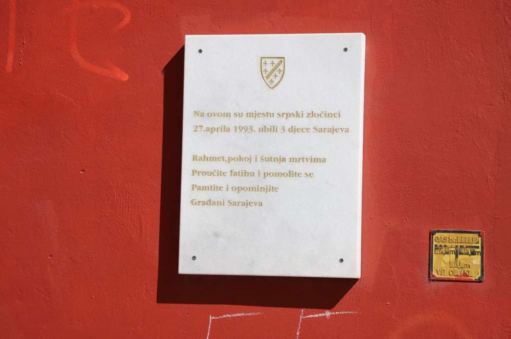 SARAJEVO, 27.aprila (FENA) - U znak trajnog sjećanja na trojicu dječake koji su od dvije granate ispaljene sa agresorskog položaja oko Sarajeva ubijeni na današnji dan 1993. godine u Jukićevoj ulici, danas je u organizaciji Udruženja roditelja ubijene djece opkoljenog Sarajeva 1992-1995. godine odata počast i položeno cvijeće na spomen-ploči.