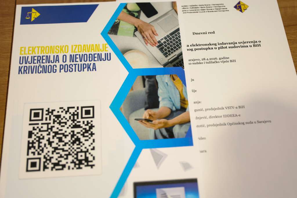 SARAJEVO, 28. aprila (FENA) - Visoko sudsko i tužilačko vijeće BiH predstavilo je danas u Sarajevu mogućnost elektronskog izdavanja uvjerenja o nevođenju krivičnog postupka u općinskim sudovima u Bihaću, Mostaru, Sarajevu i Širokom Brijegu.