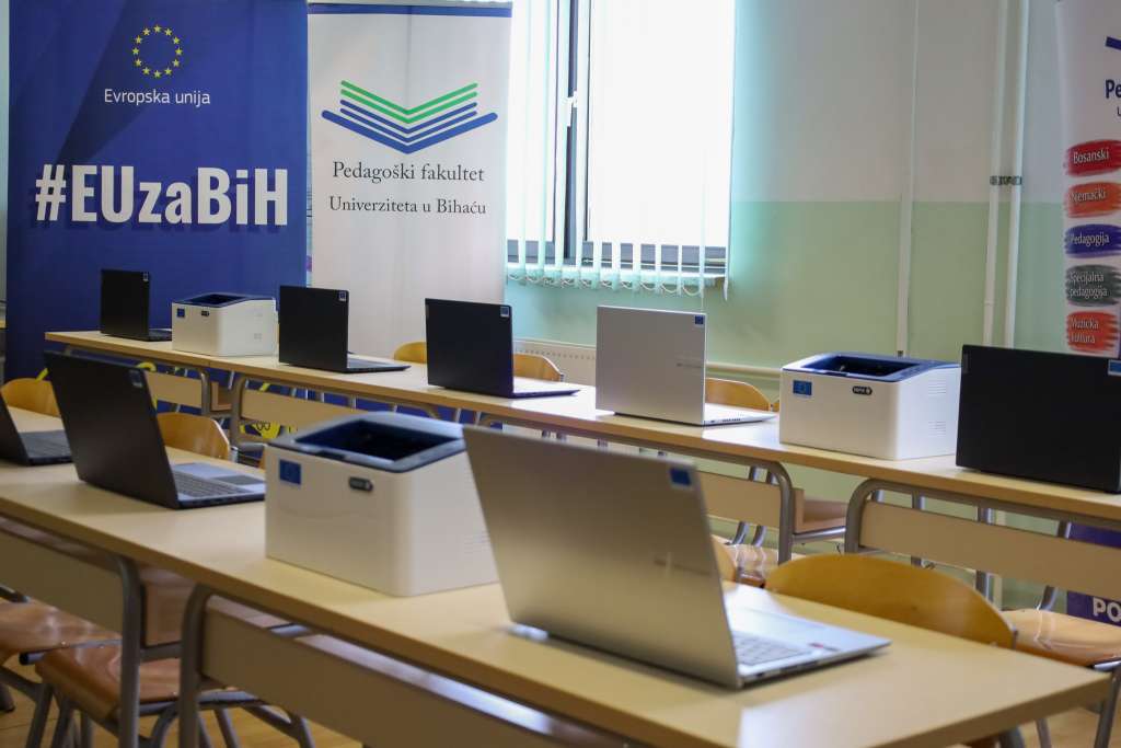 BIHAĆ, 29. aprila (FENA) - U okviru projekta „Ubrzavanje prelaska na državni odgovor na migracije u Bosni i Hercegovini“, uz finansijsku podršku Evropske unije, danas je u Bihaću upriličena svečana primopredaja vrijedne donacije Pedagoškom fakultetu Univerziteta u Bihaću. Donaciju je uručila Nataša Omerović, voditeljica Ureda Međunarodne organizacije za migracije (IOM) u Bihaću, u cilju jačanja obrazovnih kapaciteta i podrške aktivnostima koje doprinose socijalnoj koheziji.