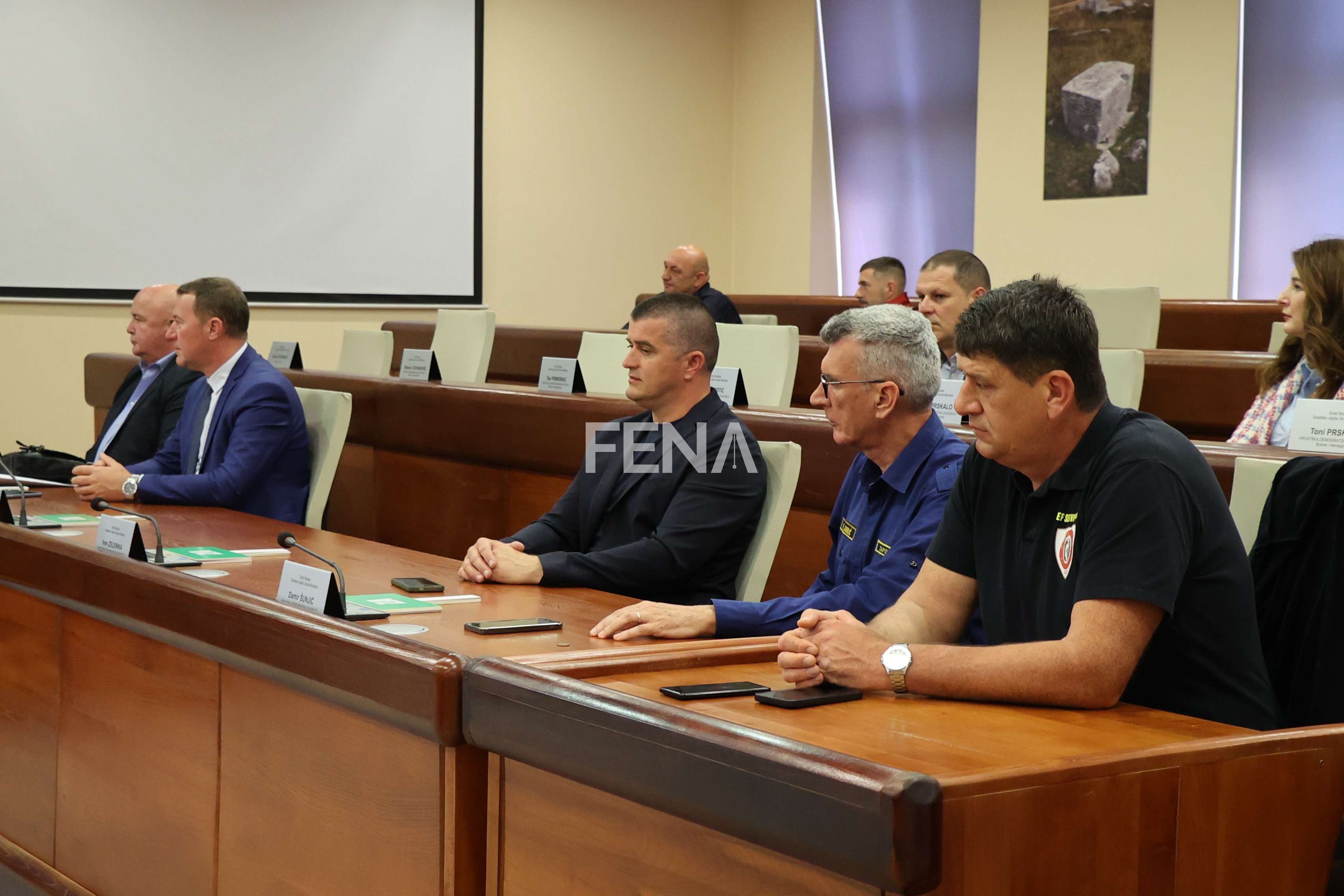 MOSTAR, 28. aprila (FENA) - Grad Mostar uime Zračne luke Mostar i kompanija "Air Tractor" iz Osijeka potpisali su u ponedjeljak u Mostaru ugovor prema kojem će ta osječka firma biti zadužena za zračno patroliranje, početno otkrivanje i gašenje požara iz zraka na području Hercegovine.(Foto FENA/Branka Soldo)