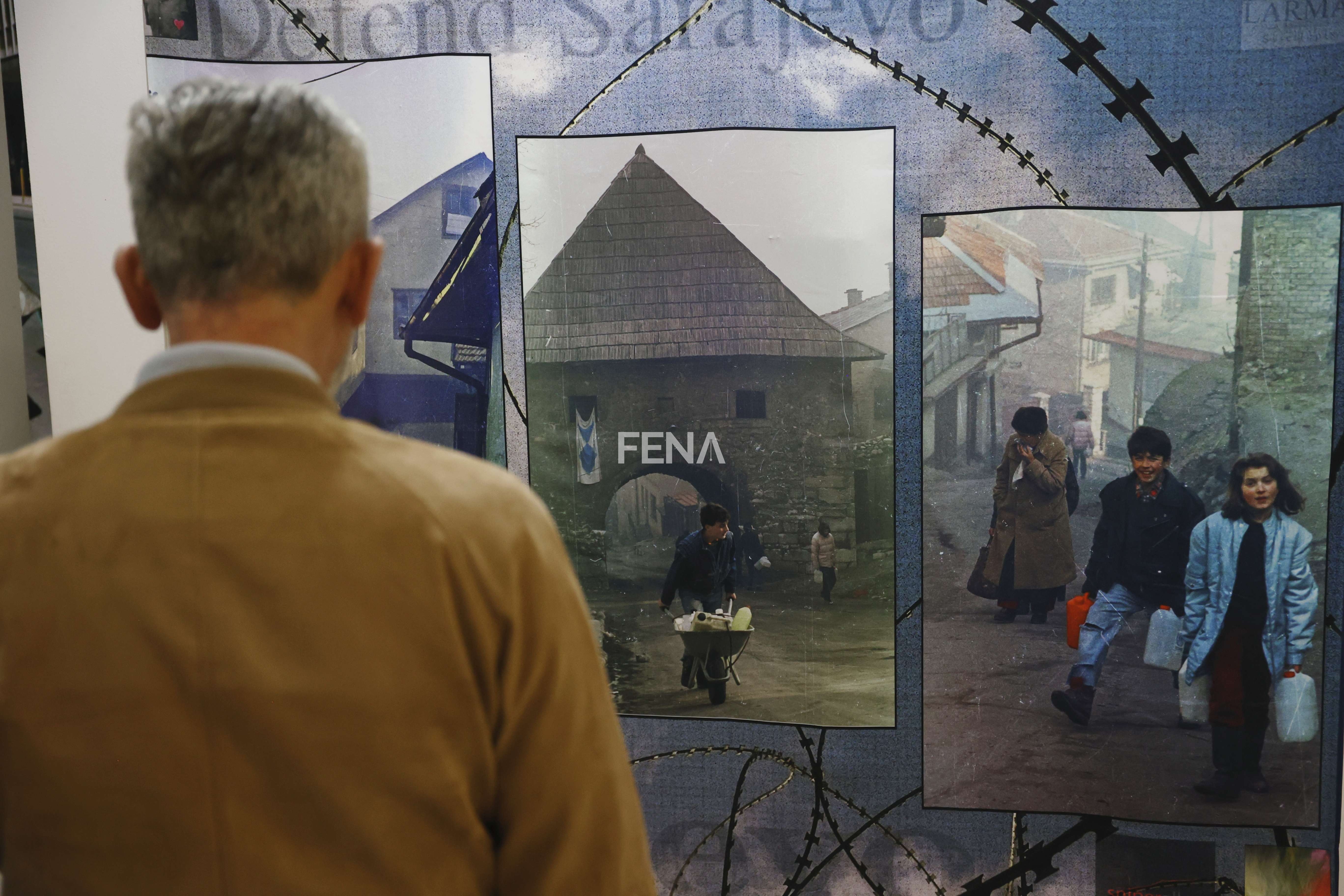 SARAJEVO, 5. maja (FENA) - Povodom obilježavanja Dana Kantona Sarajevo, večeras je u Galeriji JU Bosanski kulturni centar Kantona Sarajevo otvorena izložba ''Plač za 1.601 dijete'' koja predstavlja selekciju fotografija Rikarda Larme, nastalih tokom opsade Sarajeva koje govore o svakodnevnici i djetinjstvu suočenom sa brutalnošću rata. (Foto FENA/Almir Razić)